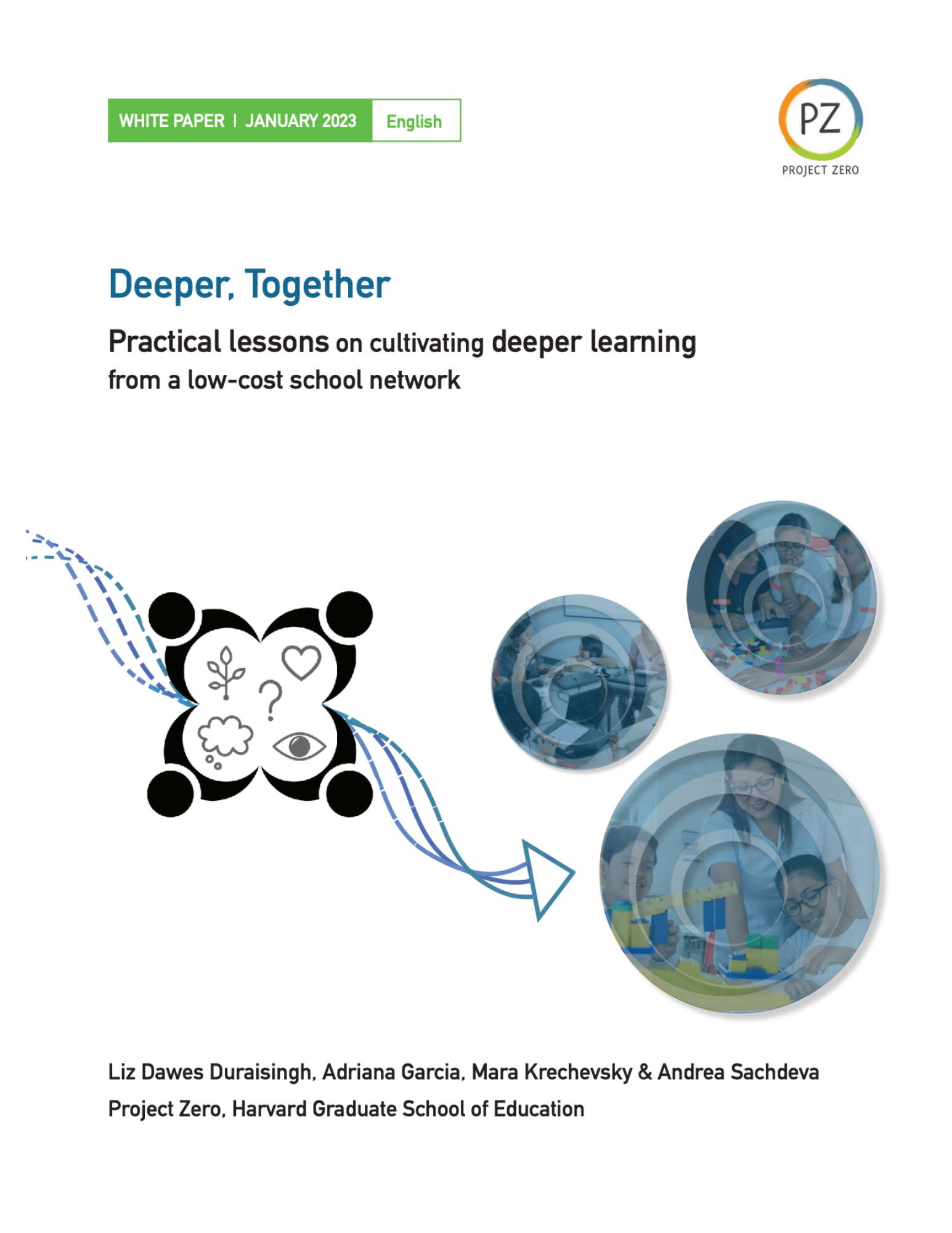This white paper distills Project Zero’s learnings about promoting inquiry, autonomy, and collaboration to advance deeper learning within a network of low-cost schools in Peru. Focusing on collaborative research conducted in 2021 with coaches and academic coordinators, it shares the favorable conditions and challenges participants encountered as they sought to enact pedagogical change; effective tools, activities, and practices in this work; and advances in participants’ thinking and practices over time. The paper will be of interest to teachers and other educational leaders working in a variety of contexts, including contexts where it may be challenging to promote or scale deeper learning practices.