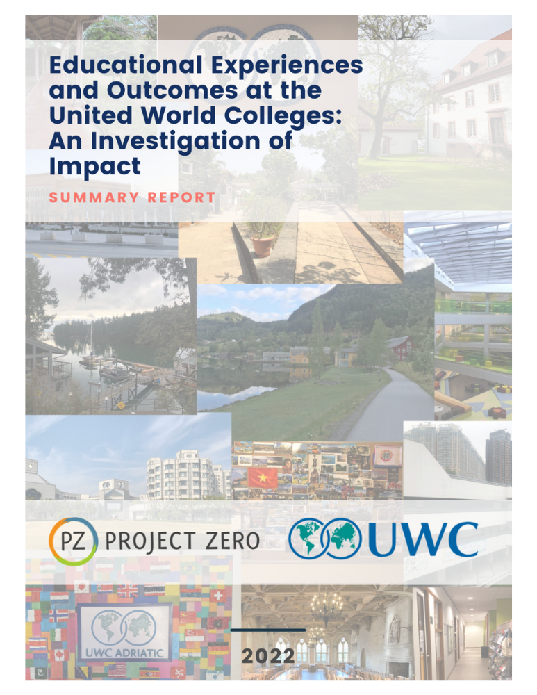 For the past several years, a team at The Good Project, part of Project Zero, has collaborated with the United World Colleges (UWC) movement on an independent review these schools’ educational model, practices, and outcomes. Our work explored the impact of a UWC education on a sample of thousands of students and alumni, and the wider world. We also included a set of 13 other non-UWC schools. The five-year longitudinal study has culminated in the report Educational Experiences and Outcomes at the United World Colleges (UWC): An Investigation of Impact, which we are pleased to publicly release today.