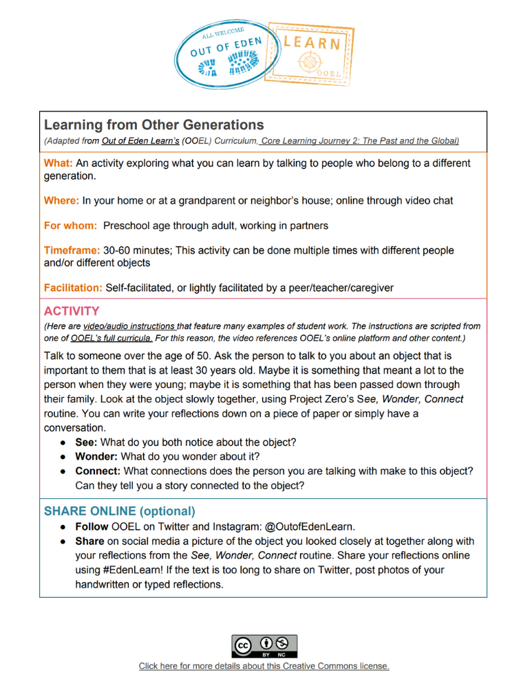 An activity for exploring what you can learn by talking to people who belong to a different generation.