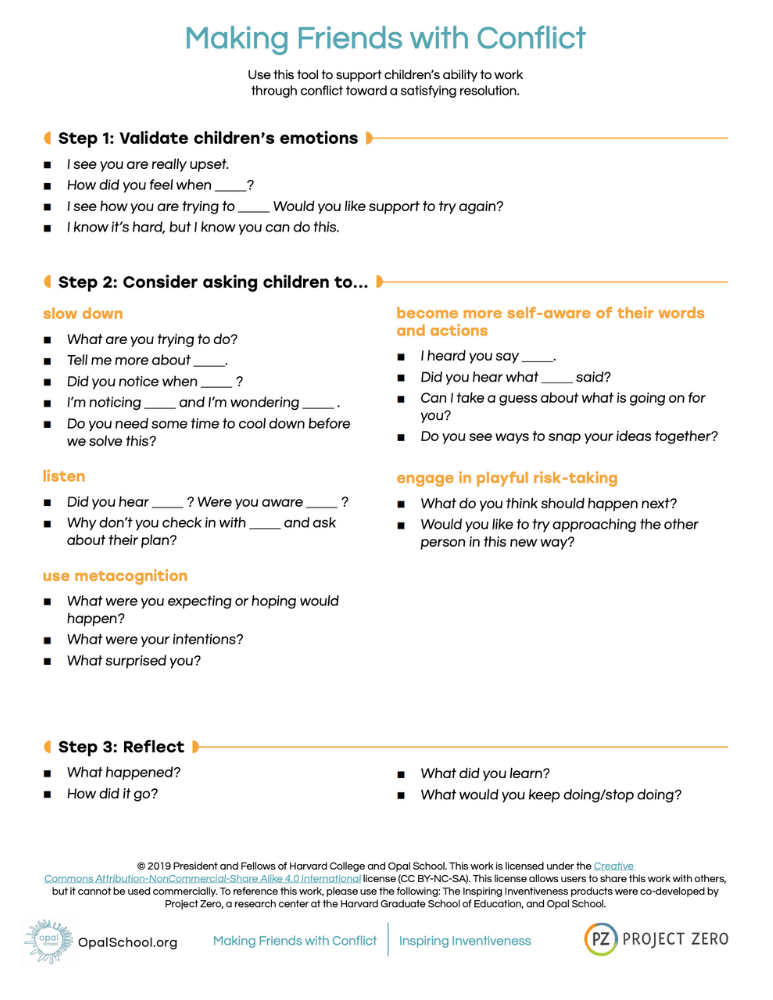 Use this tool to support children’s ability to work through conflict toward a satisfying resolution.