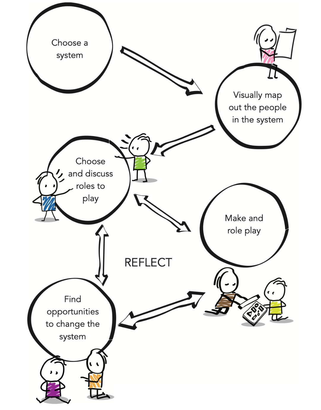Engaging young learners in exploring complexity and finding opportunities to make systems better requires perspective taking and empathy. Role playing can be a powerful approach to support learners in taking others’ perspectives when exploring the roles, ideas, and feelings of different characters in a system. Here we offer a few thoughts on how to leverage children’s natural desire to play and how to employ different thinking routines to foster perspective taking and empathy. This tool is intended as a starting point and does not need to be followed step by step or happen all at once. We suggest that points 3-5 below be iterative. Teachers should feel free to adjust this tool to meet their needs and the needs of their students.