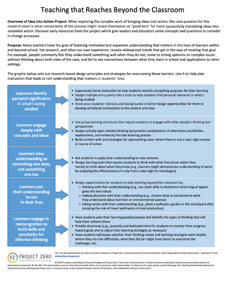 This tool presents research-based design principles and strategies for overcoming these barriers. Use it to help plan instruction that leads to rich understanding that matters in students’ lives.