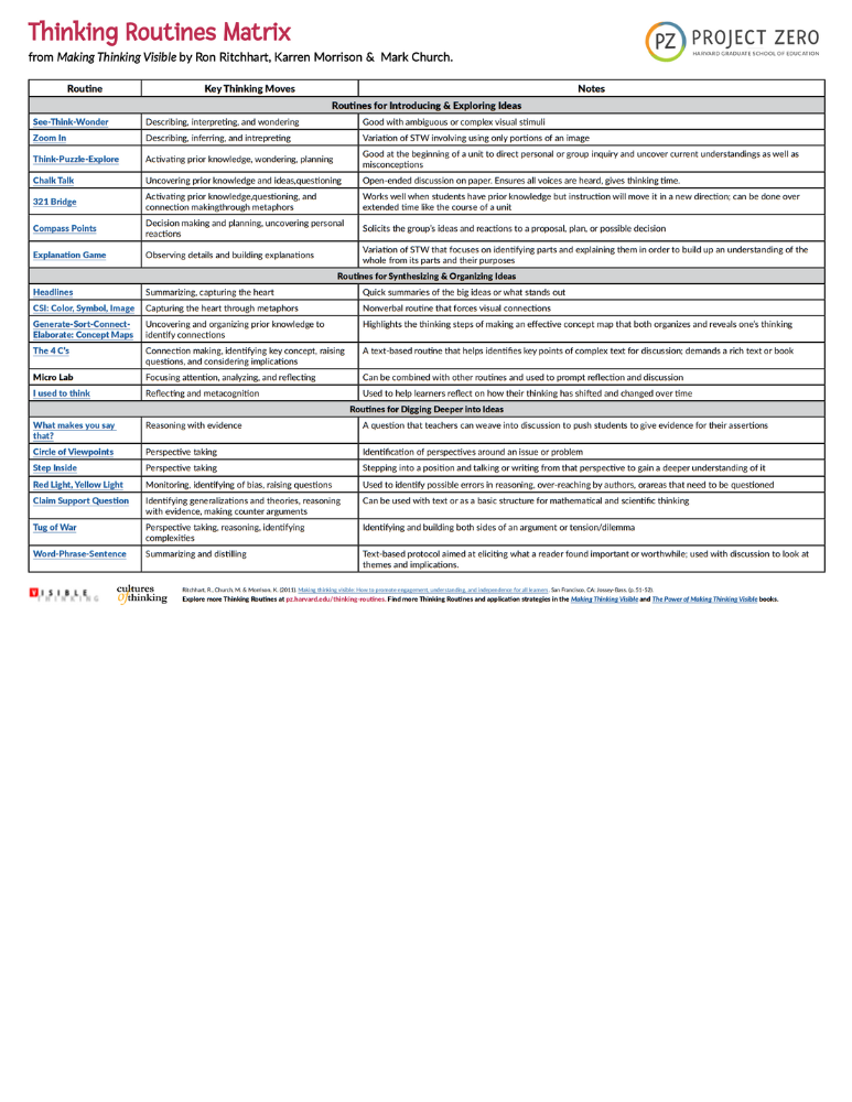 Thinking Routine Matrix