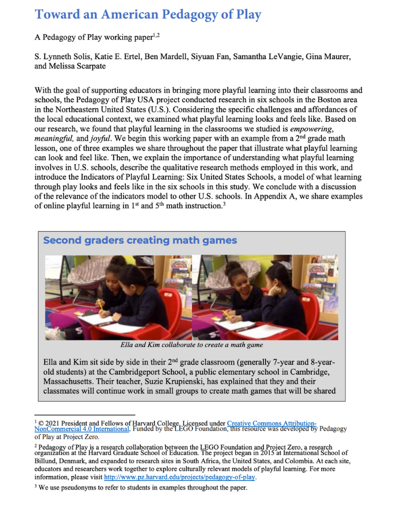 Toward an American Pedagogy of Play