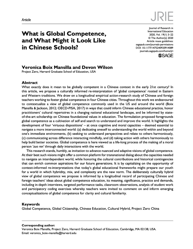What is Global Competence, and What Might it Look Like in Chinese Schools?